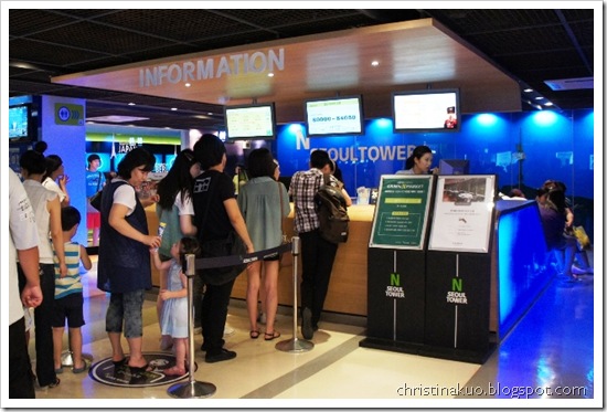 進到塔底的時後才發現, 原來info就有在賣票了!!! 而且人少超多的, 一整個無奈, 浪費了好多寶貴的時間在排隊上。所以說到首爾塔, 如果外面的售票處人多, 記得先到塔底的info看看, 可以減少不少的排隊時間喔!